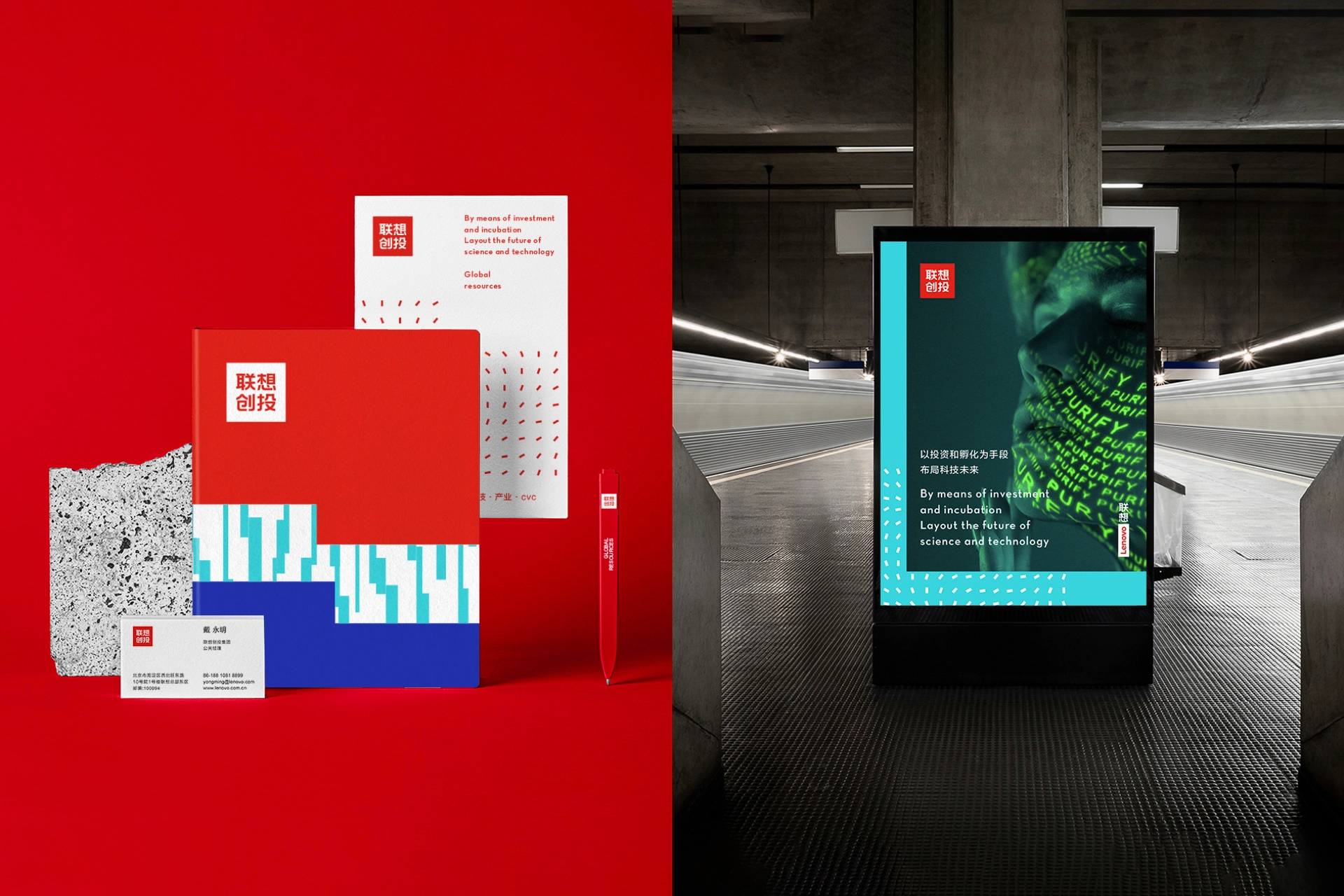 如何将「联想」、「投资」、「科技」同时完美呈现是我们在本次设计的出发点。我们对原品牌标识中的字体进行微调,使其更加符合当下互联网数字媒体使用环境,进一步提升文字标识的识别度;同时我们从代表母公司联想集团的「L」出发,提炼出辅助图形,并形成一套系统感与想象力兼备的视觉系统,丰富多变的同时也便于管理。 色彩系统方面,结合母公司联想的品牌色和联想创投所投资行业的代表色,让系统更加活泼多变、便于延展,帮助品牌建立与会员企业、行业、媒体、公众的有效沟通。